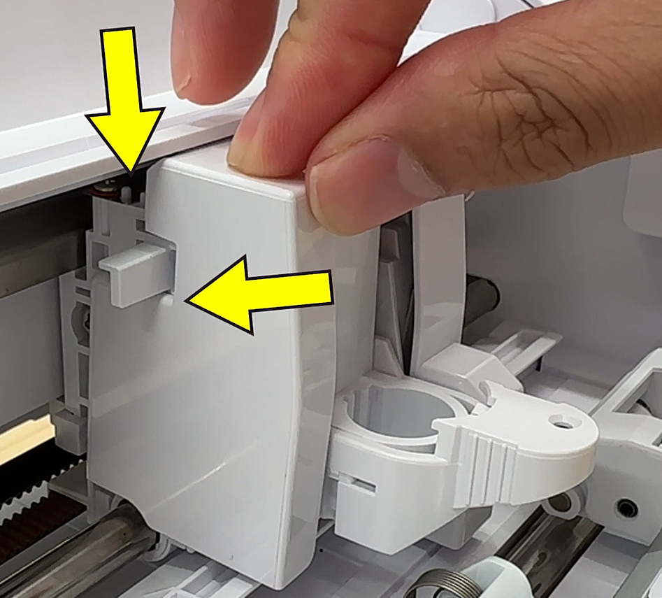캐리지 커버가 들 뜬 부분을 위와 앞을 눌러 장착합니다.