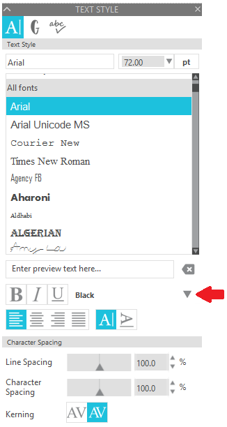 Silhouette Studio 재시작 → 텍스트 스타일 패널에서 폰트 확인