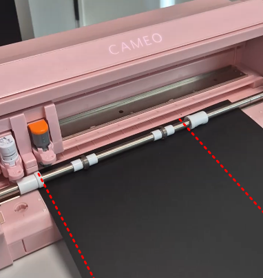 Cameo Pro 모델을 사용할 때는 핀치 롤러 위치가 재료 가장자리의 왼쪽에 맞춰져 있는지 확인하세요.