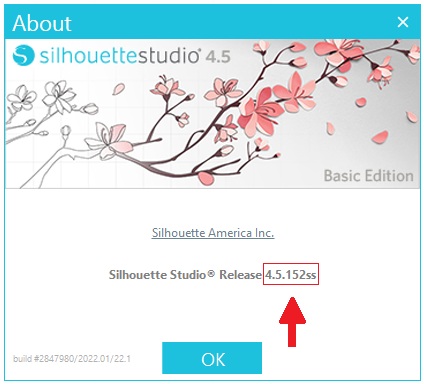 - 도움말 > Silhouette Studio 정보로 이동