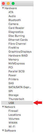 - 하드웨어 섹션을 확장하고 'USB'를 선택하세요