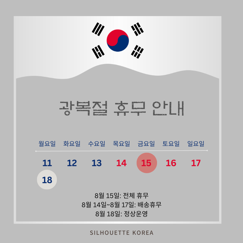 8/15(금) 광복절: 공휴일로 전화응대 및 A/S 방문, 배송 등 고객지원 불가