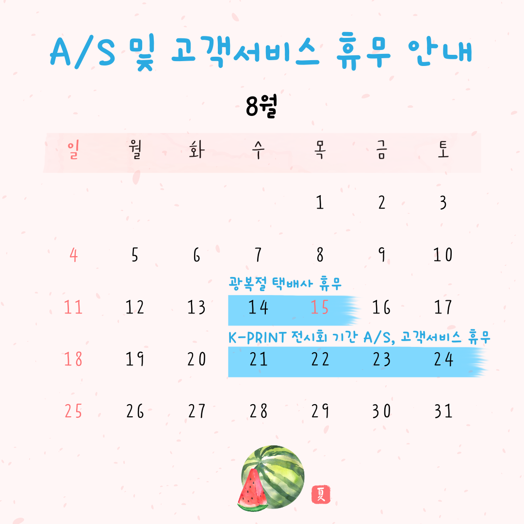 A/S 및 고객지원 서비스 휴무 예정이니 참고 부탁드립니다.